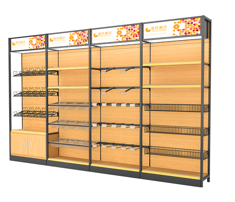 【特點】精選優(yōu)質(zhì)冷軋鋼材打造鐵框架烤漆,鐵框架鋼管厚度加厚升級。加粗加固木制背板設(shè)計,再搭配簡約時尚的木質(zhì)側(cè)板,,完美匹配各種超市便利店裝修風(fēng)格,實用性與美觀性并存,有效增強商品展示的效果。貨架頂端可增配廣告牌分類牌,便于對所陳列的商品進行分類指示,對顧客購物形成有效引導(dǎo),提升顧客購物體驗。
